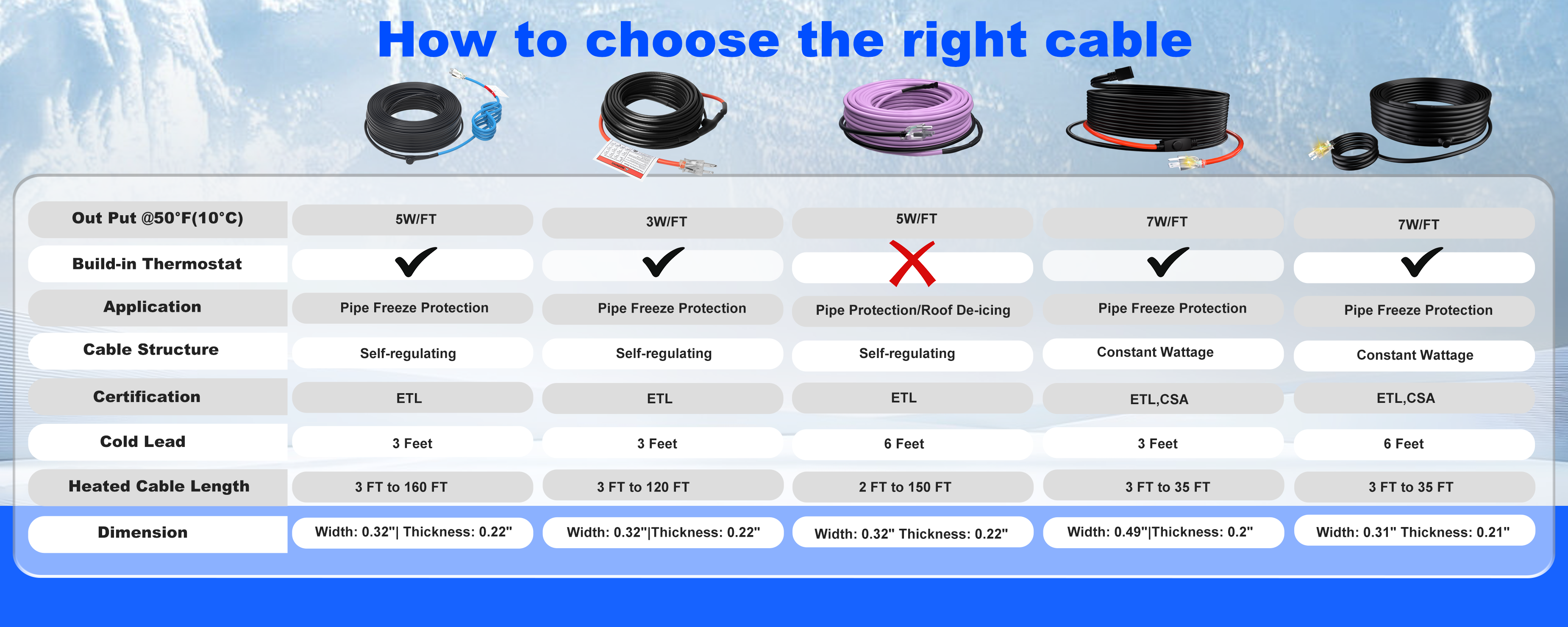 TOPDURE 5W/Feet 120V Self-Regulating Pre-Assembled Water Pipe Heat Cable for Pipe Freeze Protection, Energy-Saving Pipe Heating Cable Keeps Water Flowing at -40°F