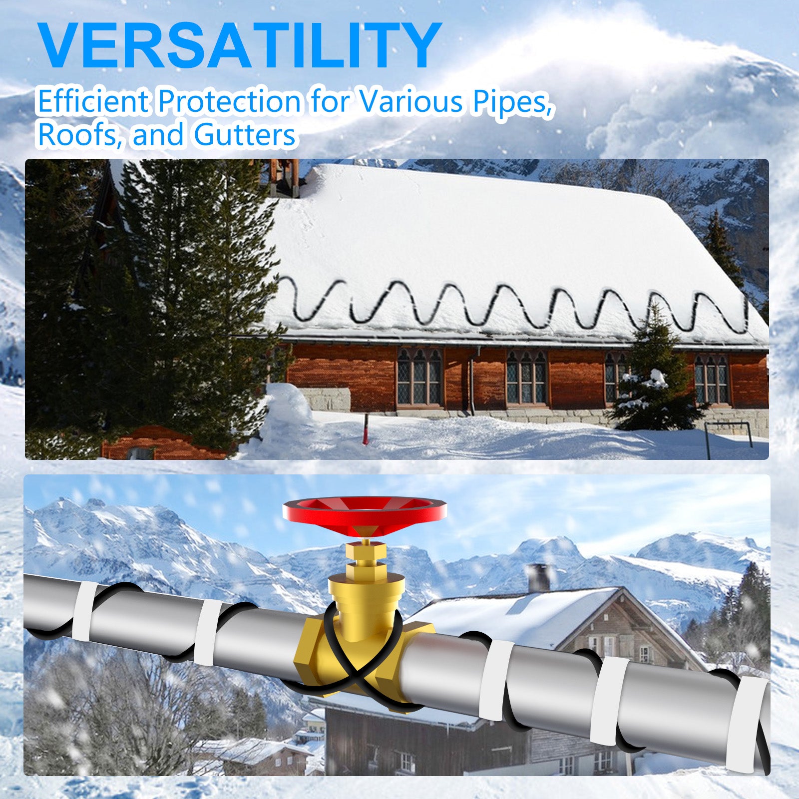 - 【Advanced Self-Regulating Heating Technology】 The heating tape automatically adjusts power output to prevent overheating and offers installation options in straight-traced, spiraled, or overlapped configurations.