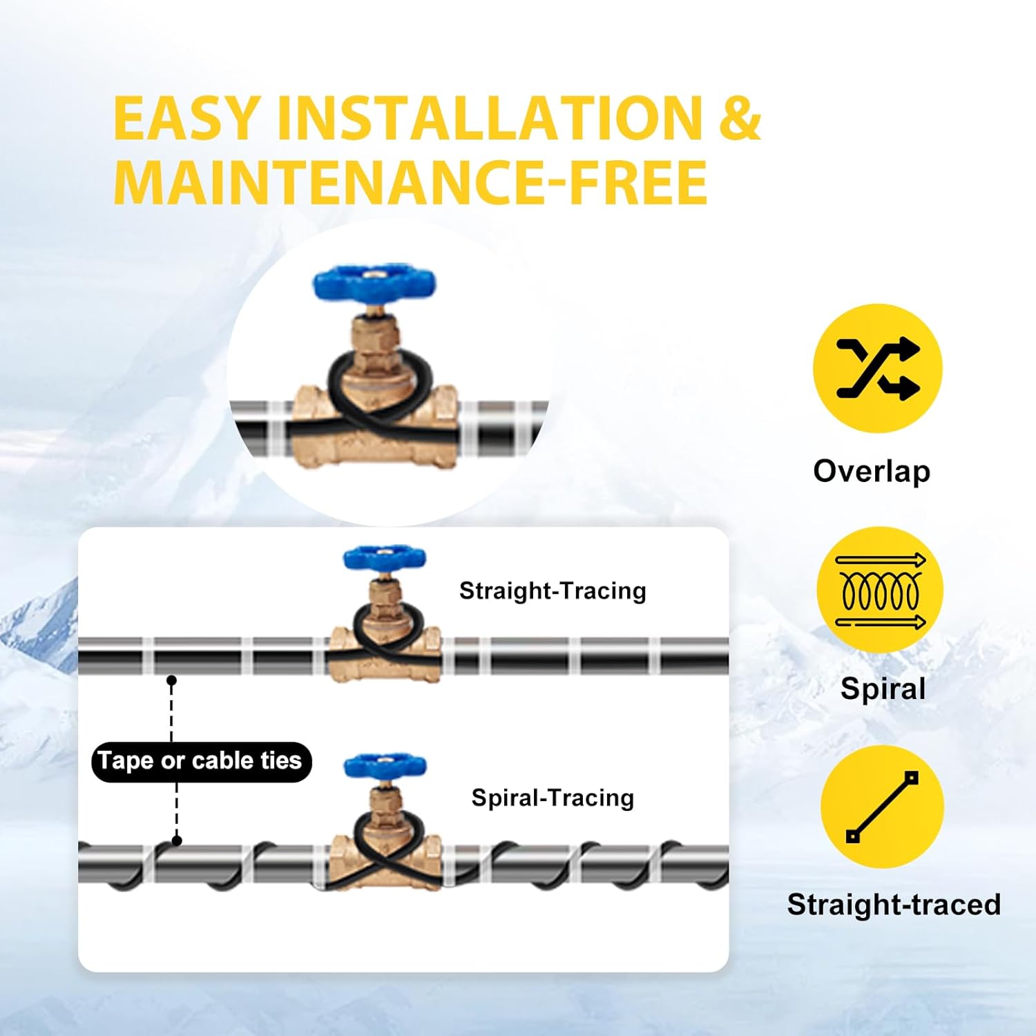 - 【ETL Certified for Ultimate Safety】ETL certification validates compliance with North American safety standards. Our self-regulating heating cable is fully ETL-certified, ensuring unmatched reliability. The plug is also UL certified, providing comprehensive protection. True safety requires complete certification – not just partial compliance (e.g., a UL-certified plug but uncertified cable). Our cable meets the highest safety benchmarks throughout its design, guaranteeing full protection.
